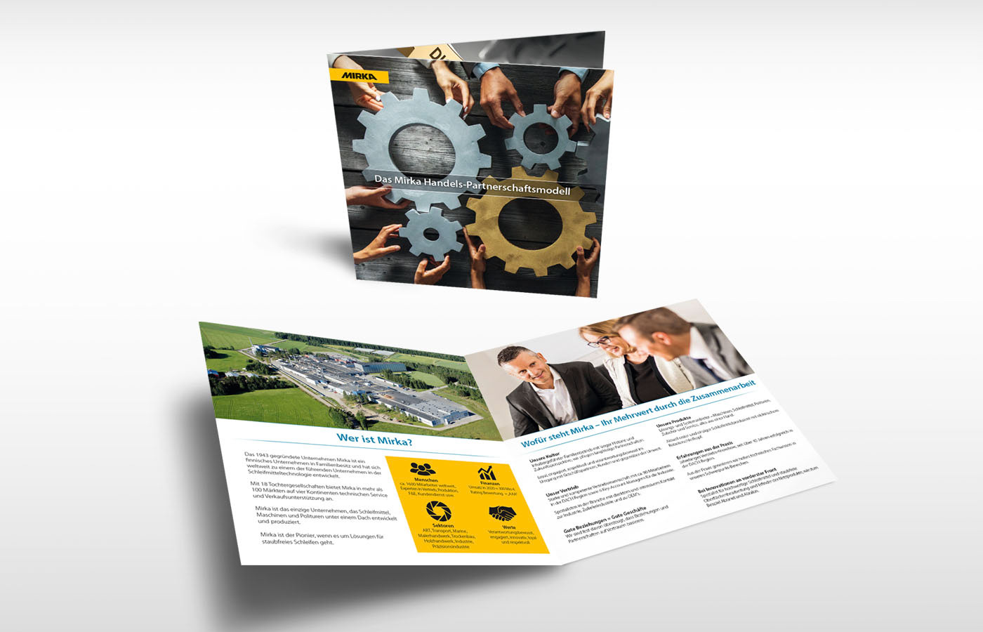 Konzeption / Layout / Gestaltung von Imagebroschüren, Aktionsflyern, Anzeigen, Directmailings, Plakaten und weiteren Printmedien. Hierzu gehören auch die Konzeption und Umsetzung von Displays und POS Material. Kunde: Mirka GmbH