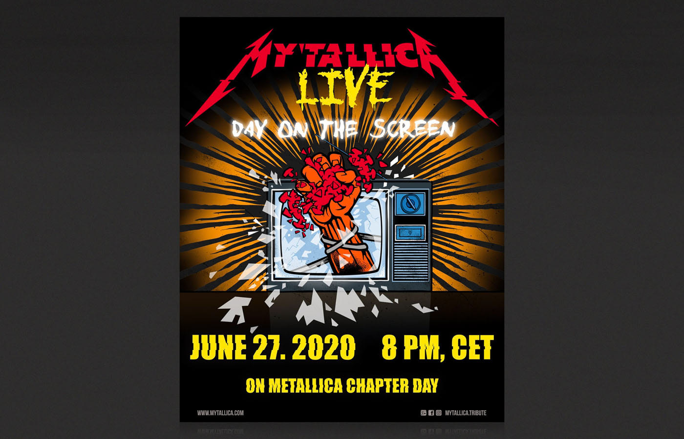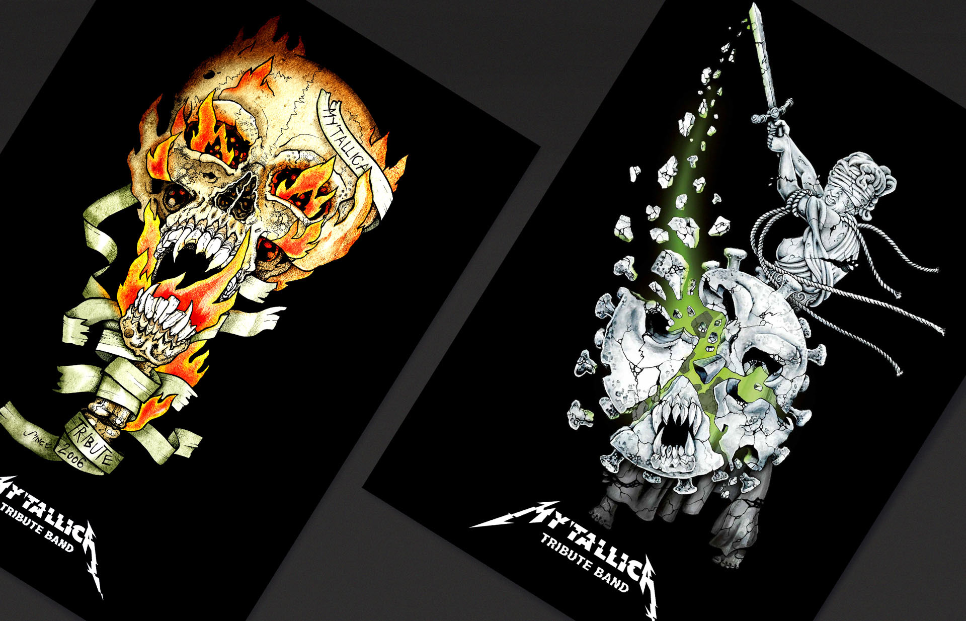 Konzeption / Layout / Gestaltung / Colorierung für Plakate, Flyer, T-Shirts / Merchandise, Online Banner Streaming Events und Social Media Posts. Kunde: My´tallica