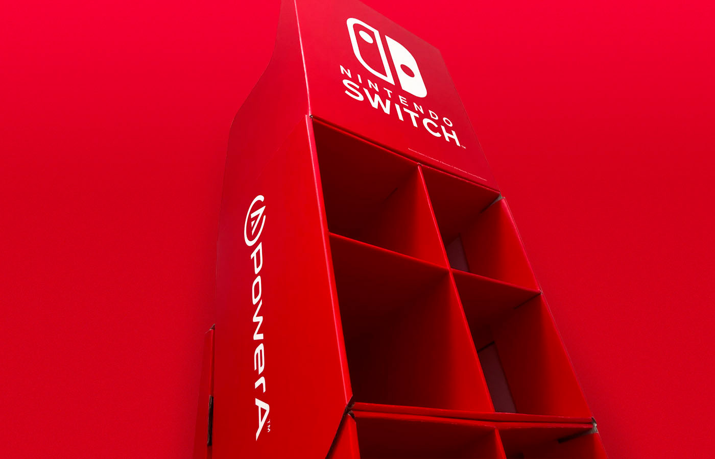 Layout / Gestaltung / Reinzeichnung eines von PowerA und Nintendo lizensierten Displays für den Einzelhandel zur Verkaufsförderung von NINTENDO SWITCH Zubehör. Kunde: Nordic Games Supply